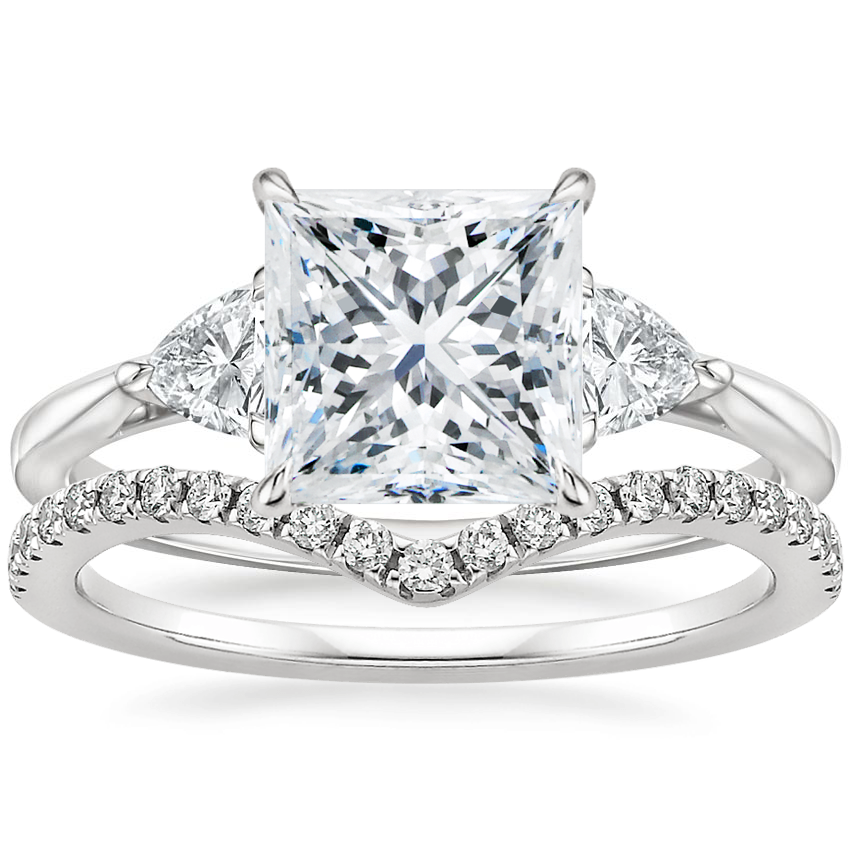 Platinum Luxe Trillion Cut Three Stone Diamond Ring with Flair Diamond Ring (1/6 ct. tw.)