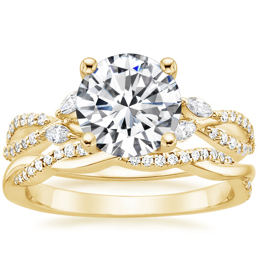 Luxe Willow Diamond Ring (1/4 ct. tw.) with Petite Twisted Vine Diamond Ring (1/8 ct. tw.) in 18K Yellow Gold