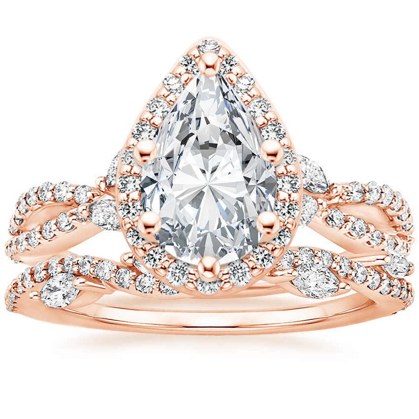 14K Rose Gold Luxe Willow Halo Diamond Ring (1/2 ct. tw.) with Luxe Winding Willow Diamond Ring (1/4 ct. tw.)