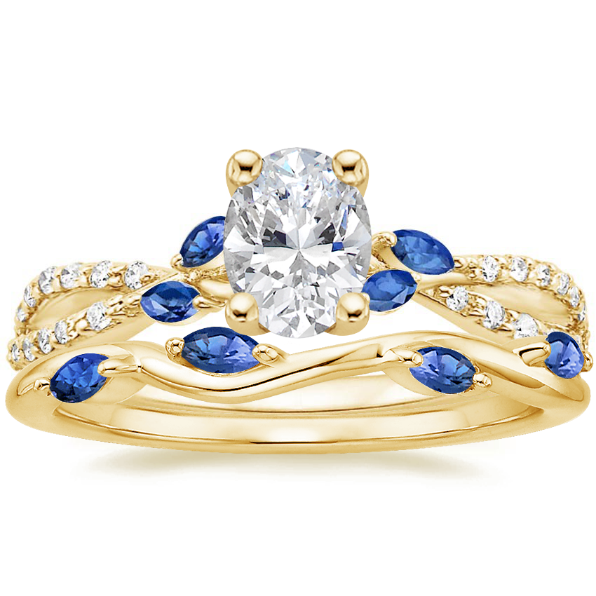 18K Yellow Gold Luxe Willow Sapphire and Diamond Ring (1/8 ct. tw.) with Winding Willow Sapphire Ring
