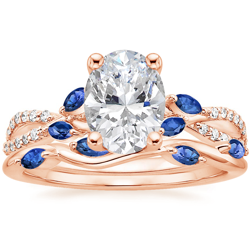 14K Rose Gold Luxe Willow Sapphire and Diamond Ring (1/8 ct. tw.) with Winding Willow Sapphire Ring