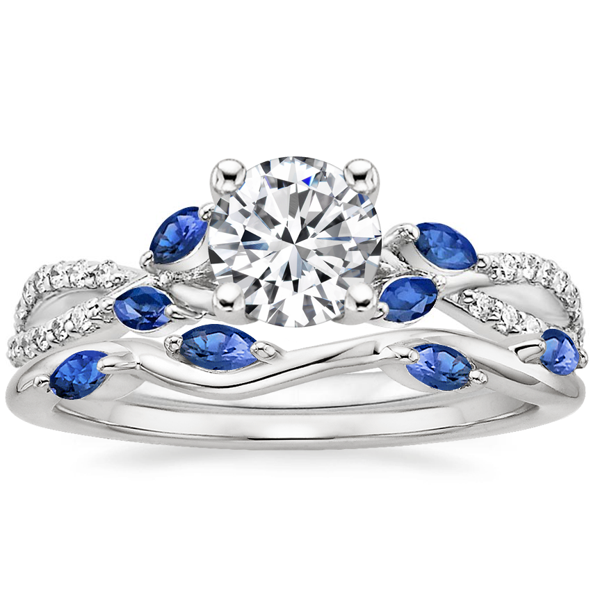 18K White Gold Luxe Willow Sapphire and Diamond Ring (1/8 ct. tw.) with Winding Willow Sapphire Ring