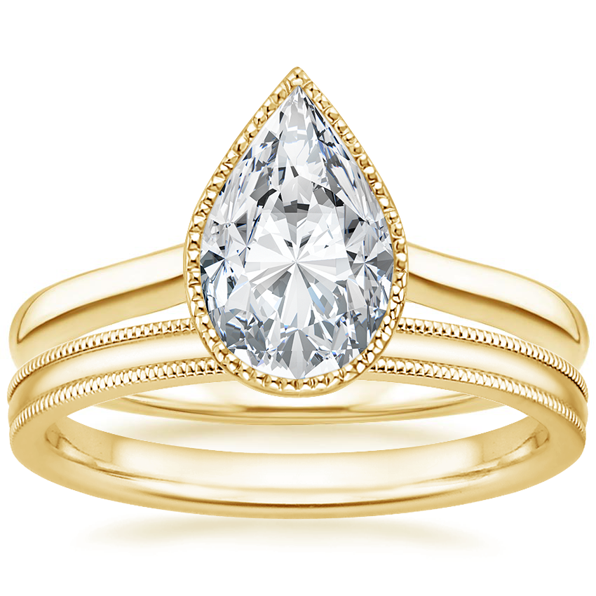 18K Yellow Gold Margot Ring with 2mm Milgrain Wedding Ring