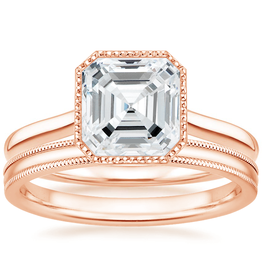 Margot Ring with 2mm Milgrain Wedding Ring in 14K Rose Gold