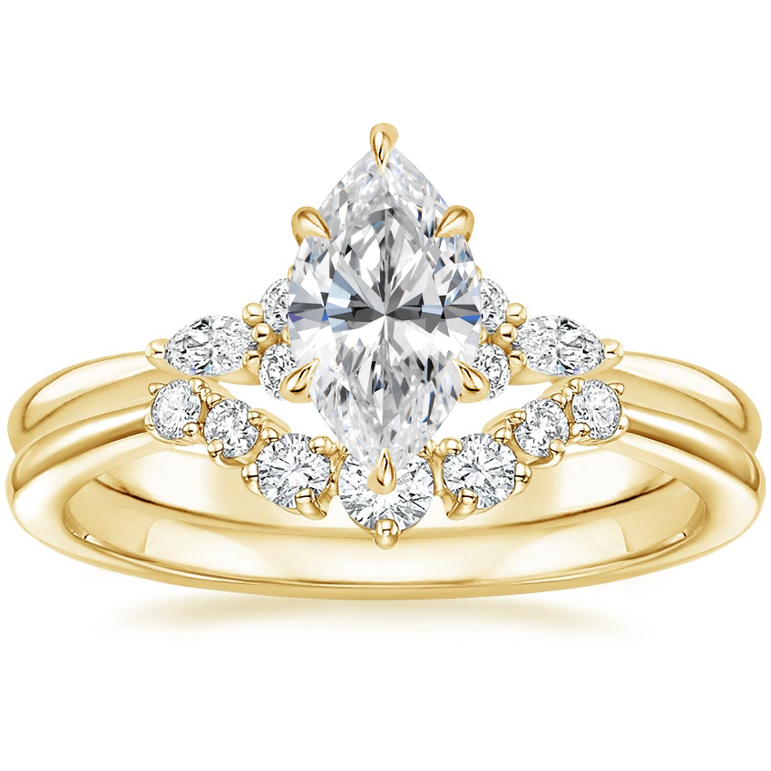 18K Yellow Gold Nadia Diamond Ring with Aria Contoured Diamond Ring