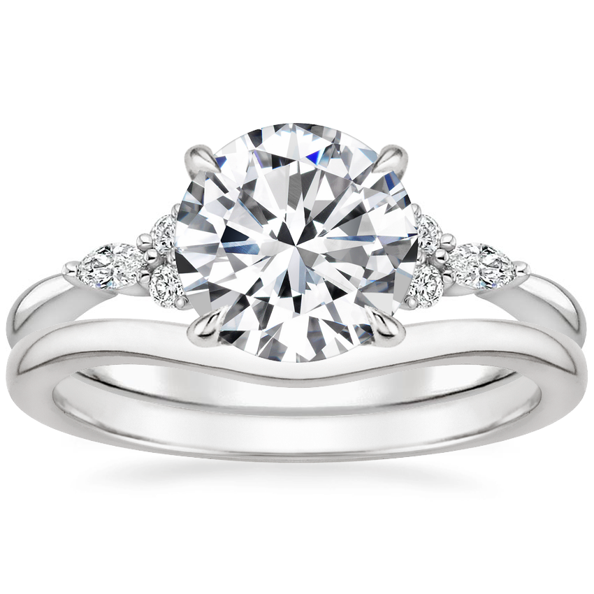 18K White Gold Nadia Diamond Ring with Petite Curved Wedding Ring