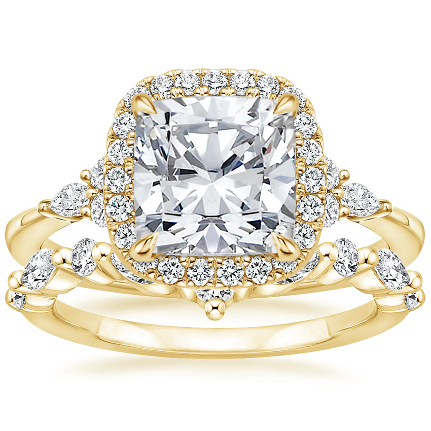 18K Yellow Gold Nadia Halo Diamond Ring (1/4 ct. tw.) with Curved Versailles Diamond Ring