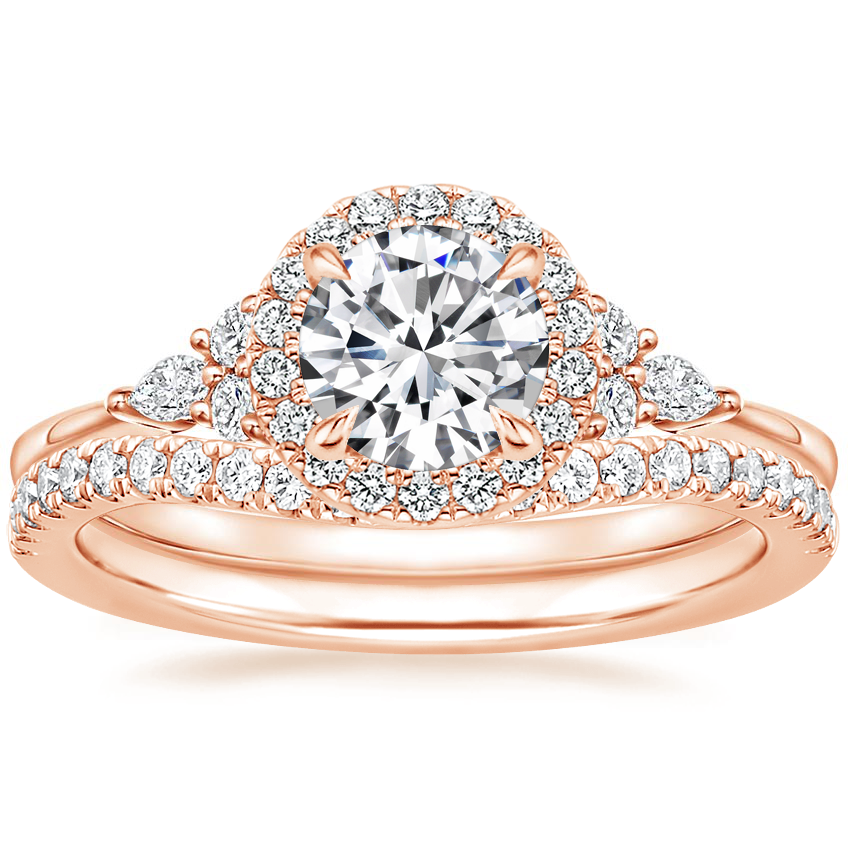 14K Rose Gold Nadia Halo Diamond Ring with Curved Ballad Diamond Ring (1/6 ct. tw.)
