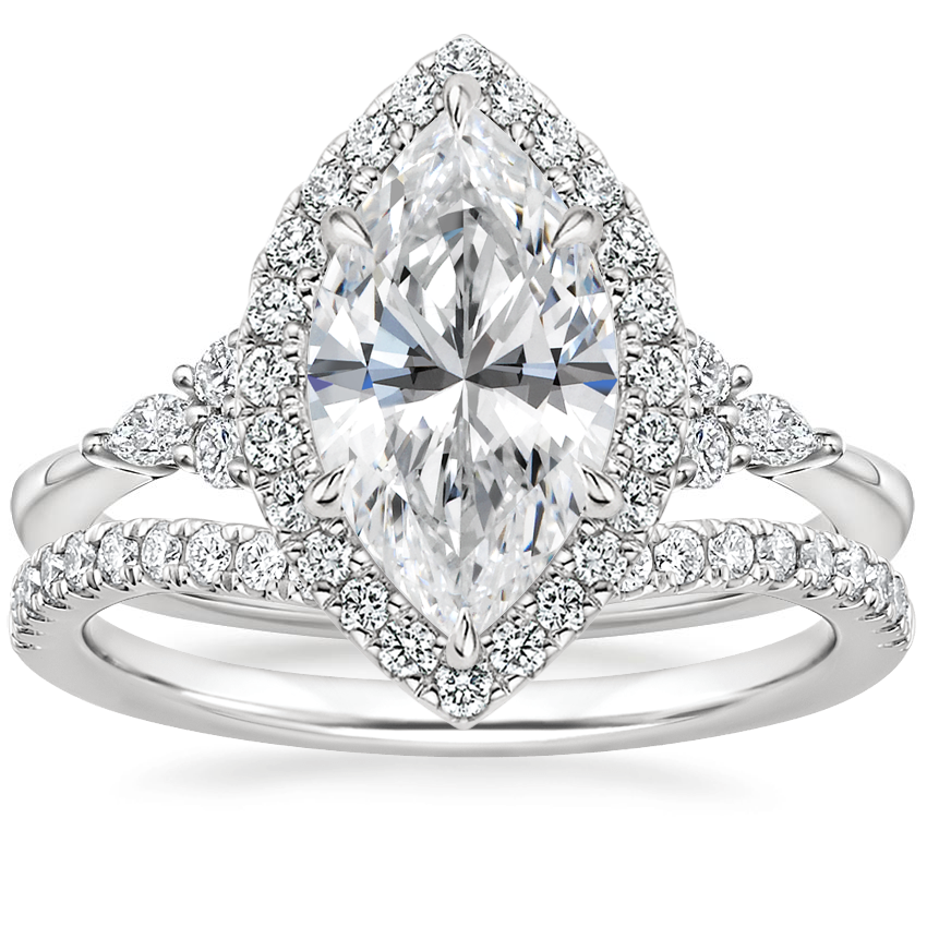 My fiancé got me this ring with a marquis center stone and it is absolutely incredible. We went with a lab diamond to save money on a larger stone and I am so thrilled with it. It is insanely sparkly!