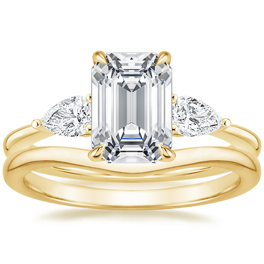 18K Yellow Gold Opera Diamond Ring with Petite Curved Wedding Ring