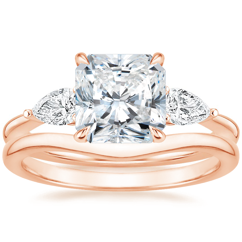 Opera Diamond Ring with Petite Curved Wedding Ring in 14K Rose Gold