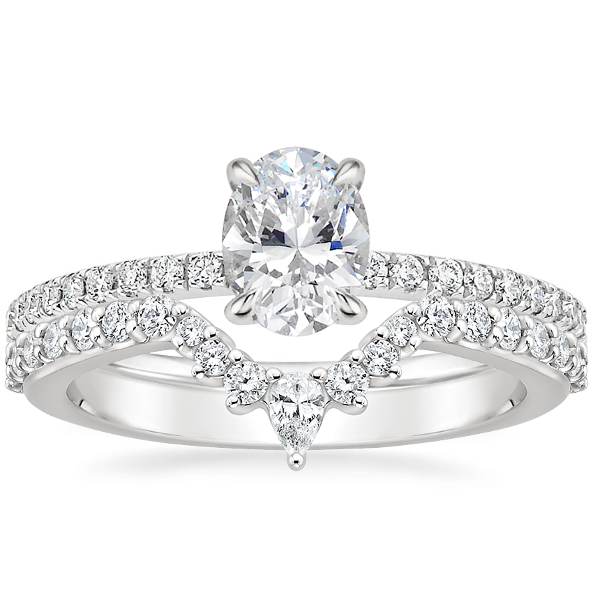 18K White Gold Perfect Fit Diamond Ring (1/5 ct. tw.) with Luxe Lunette Diamond Ring (1/3 ct. tw.)