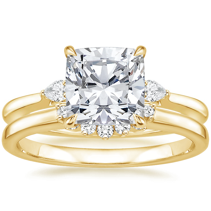 18K Yellow Gold Perfect Fit Three Stone Pear Diamond Ring with Crescent Diamond Ring