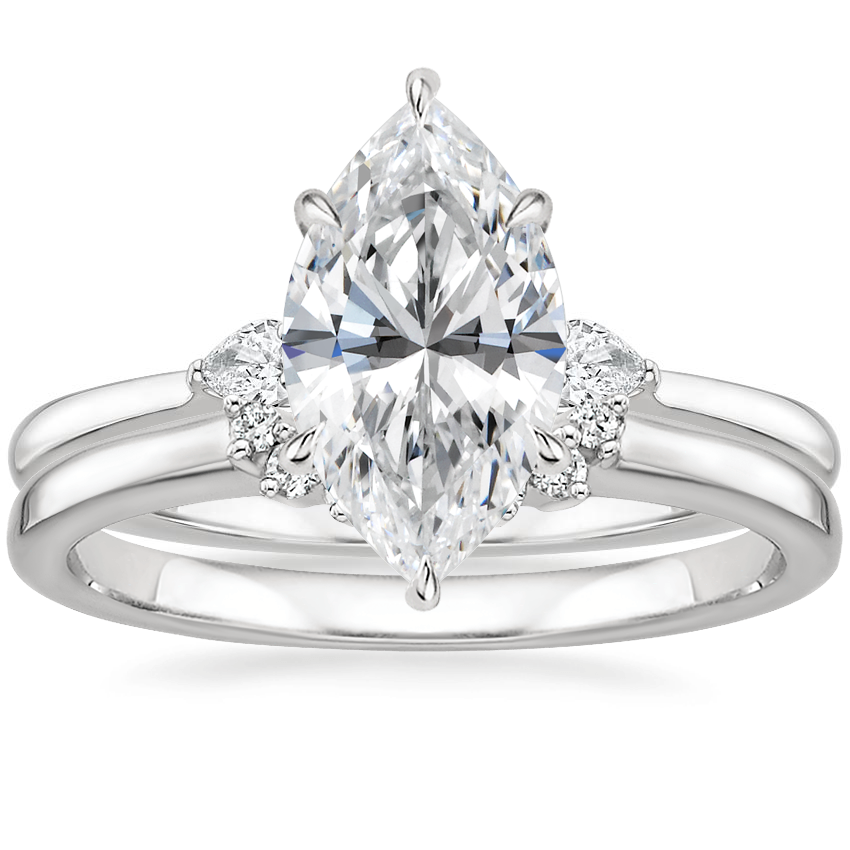 Perfect Fit Three Stone Pear Diamond Ring with Crescent Diamond Ring in 18K White Gold