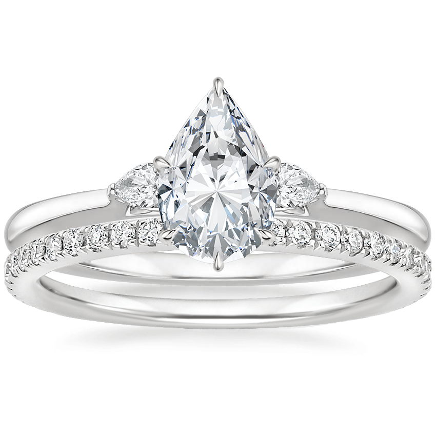 18K White Gold Perfect Fit Three Stone Pear Diamond Ring with Luxe Ballad Diamond Ring