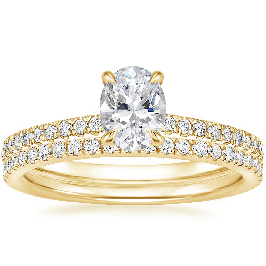 18K Yellow Gold Petite Demi Diamond Ring (1/5 ct. tw.) with Luxe Ballad Diamond Ring (1/4 ct. tw.)