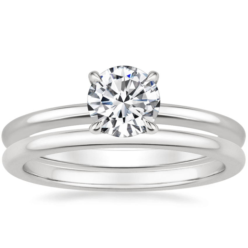 18K White Gold Petite Elodie Ring with Petite Comfort Fit Wedding Ring
