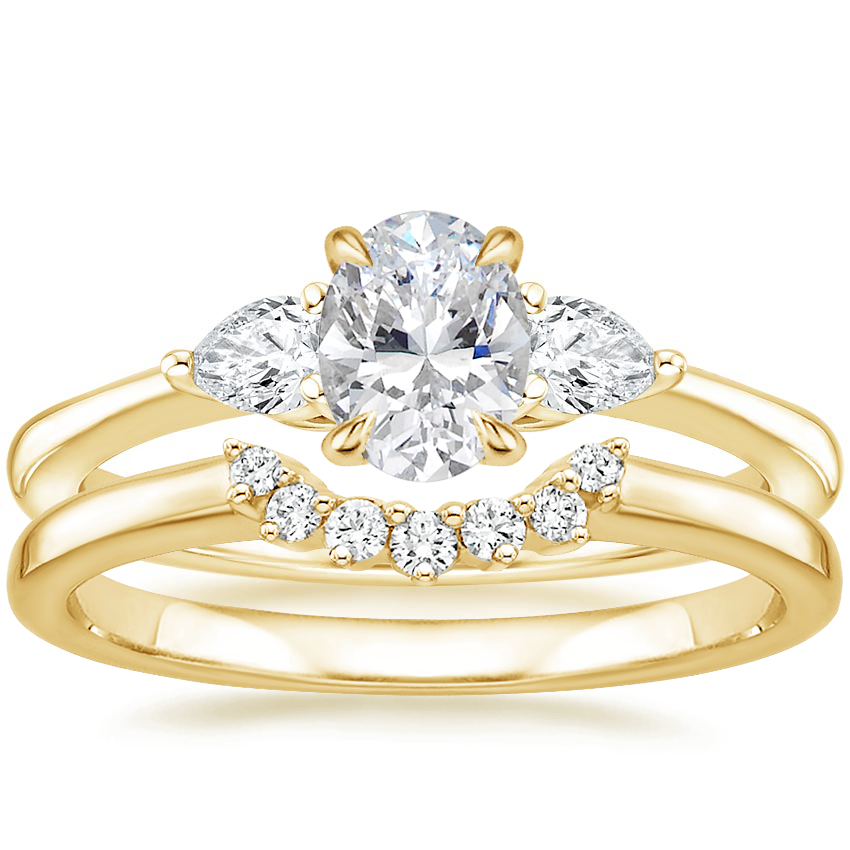18K Yellow Gold Petite Opera Diamond Ring (1/4 ct. tw.) with Crescent Diamond Ring