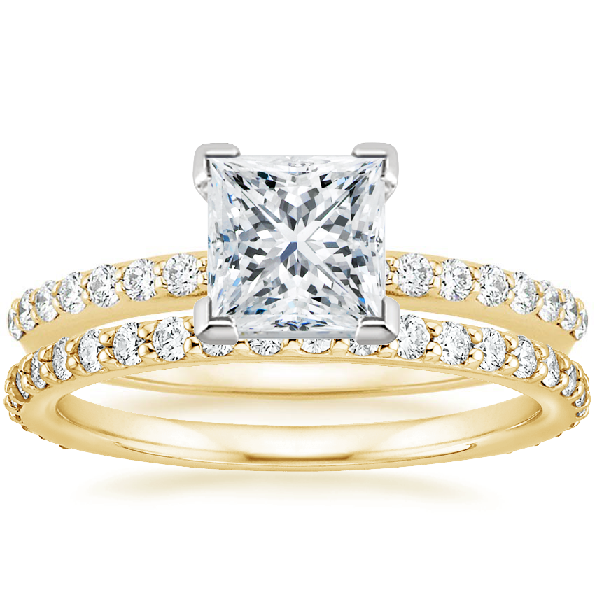 18K Yellow Gold Petite Shared Prong Diamond Ring (1/4 ct. tw.) with Eternity Petite Shared Prong Diamond Ring (1/2 ct. tw.)