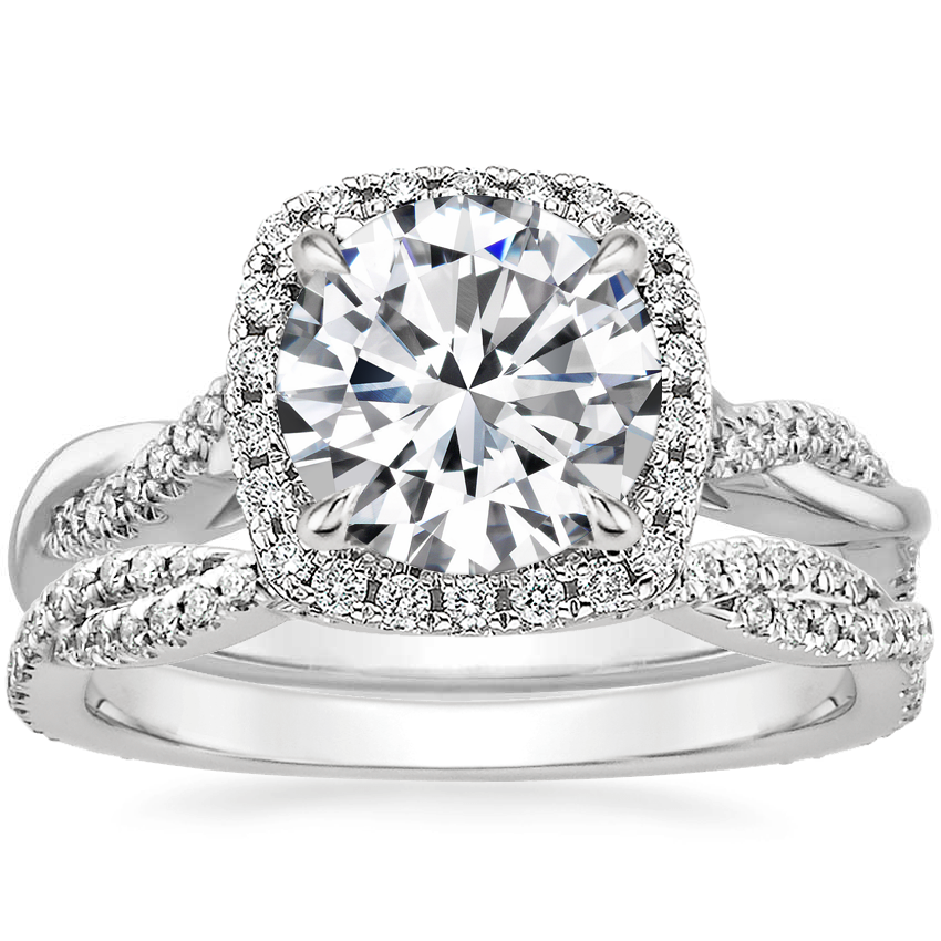Platinum Petite Twisted Vine Halo Diamond Ring (1/4 ct. tw.) with Petite Luxe Twisted Vine Diamond Ring
