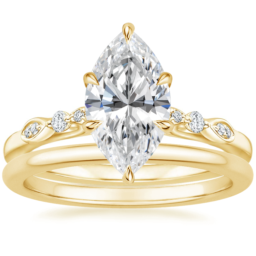 18K Yellow Gold Rochelle Diamond Ring with Petite Comfort Fit Wedding Ring