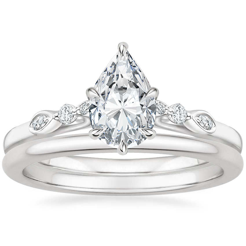 18K White Gold Rochelle Diamond Ring with Petite Comfort Fit Wedding Ring