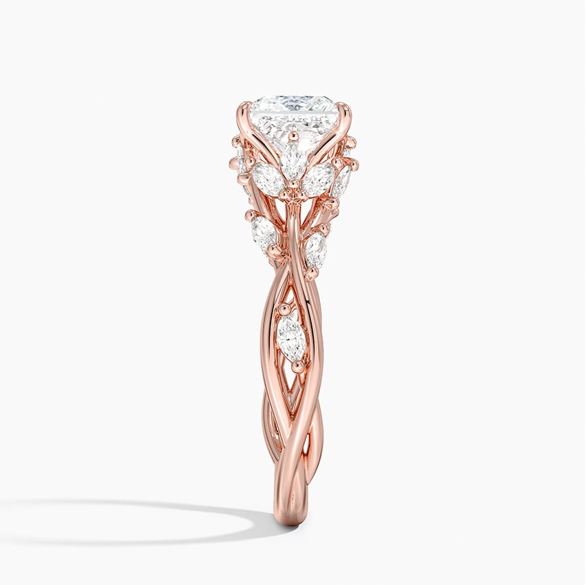 Glistening marquise-shaped diamond buds rest on whimsical vines of precious metal winding towards the center gem for a look of natural elegance (1/2 total carat weight).