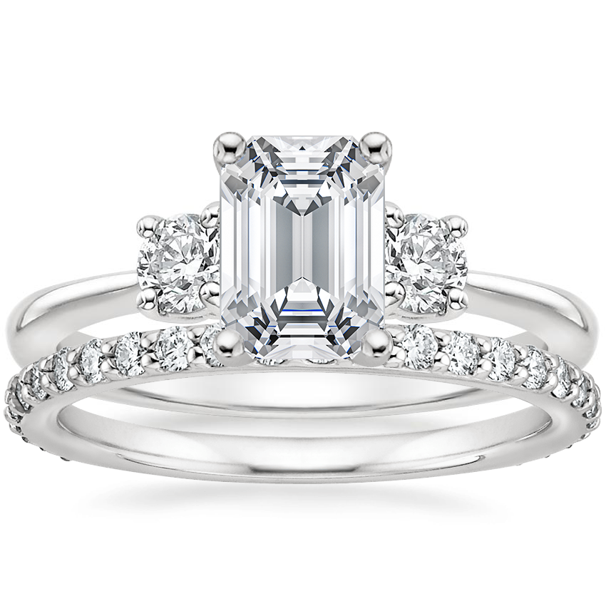 18K White Gold Serena Diamond Ring (1/3 ct. tw.) with Petite Shared Prong Eternity Diamond Ring (1/2 ct. tw.)
