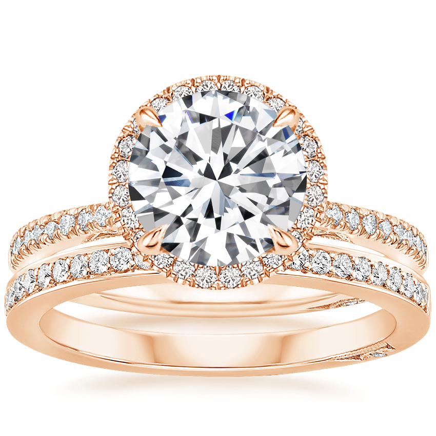 18K Rose Gold Simply Tacori Cathedral Drape Diamond Ring with Tacori Dantela Diamond Ring (1/8 ct. tw.)