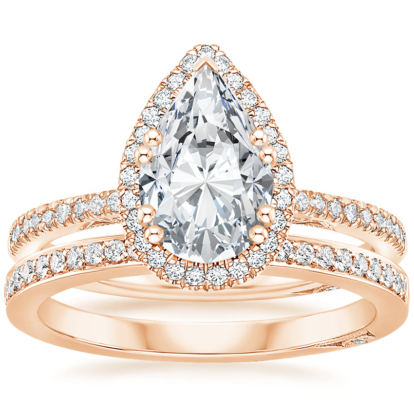 18K Rose Gold Simply Tacori Cathedral Drape Diamond Ring with Tacori Dantela Diamond Ring (1/8 ct. tw.)