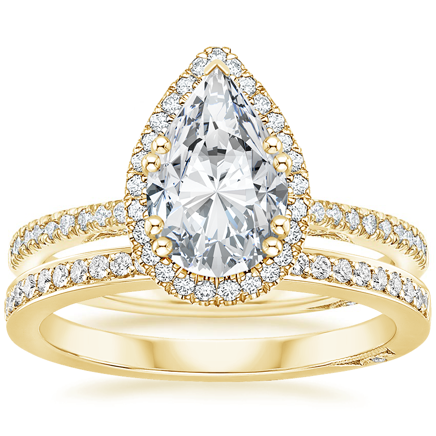 18K Yellow Gold Simply Tacori Cathedral Drape Diamond Ring with Tacori Dantela Diamond Ring (1/8 ct. tw.)