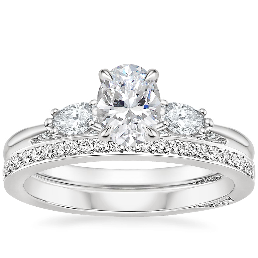 18K White Gold Simply Tacori Three Stone Marquise Diamond Ring with Tacori Dantela Diamond Ring (1/8 ct. tw.)