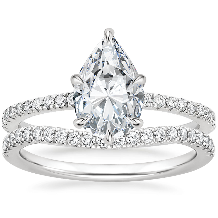 Six Prong Luxe Viviana Diamond Ring (1/3 ct. tw.) with Curved Ballad Diamond Ring (1/6 ct. tw.) in 18K White Gold
