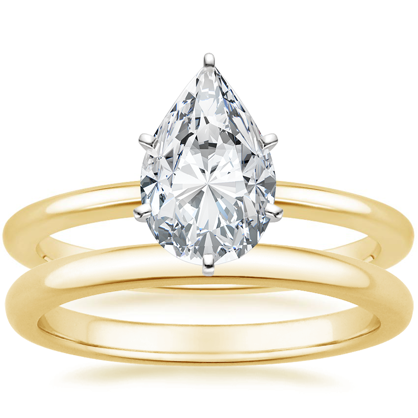 Six-Prong Petite Comfort Fit Ring with 2mm Comfort Fit Wedding Ring in 18K Yellow Gold