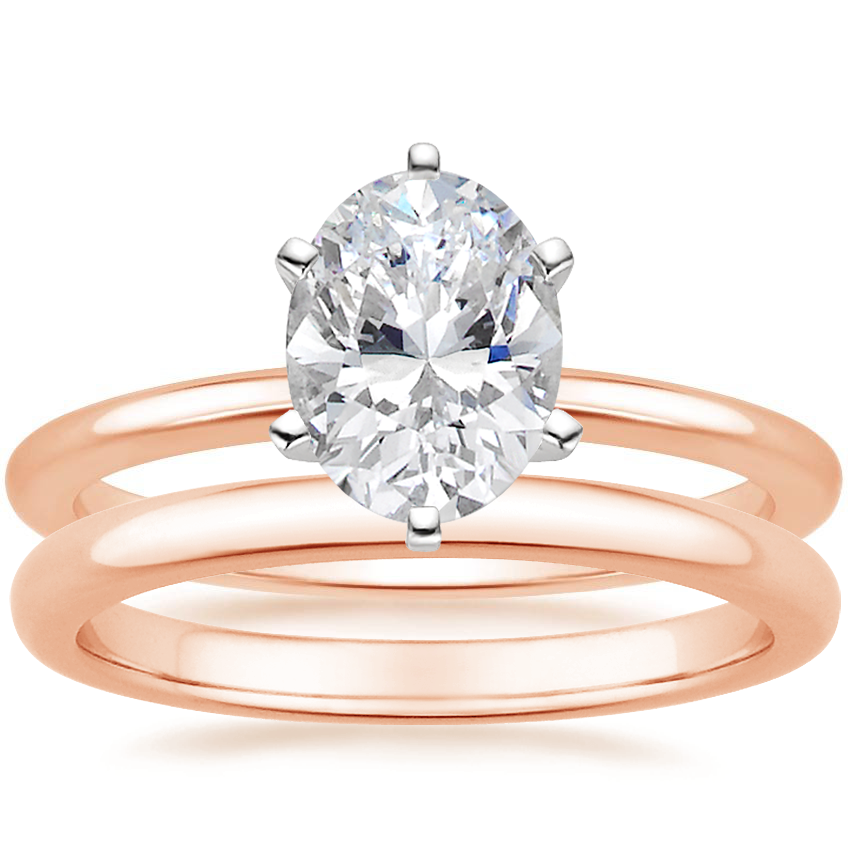14K Rose Gold Six-Prong Petite Comfort Fit Ring with 2mm Comfort Fit Wedding Ring