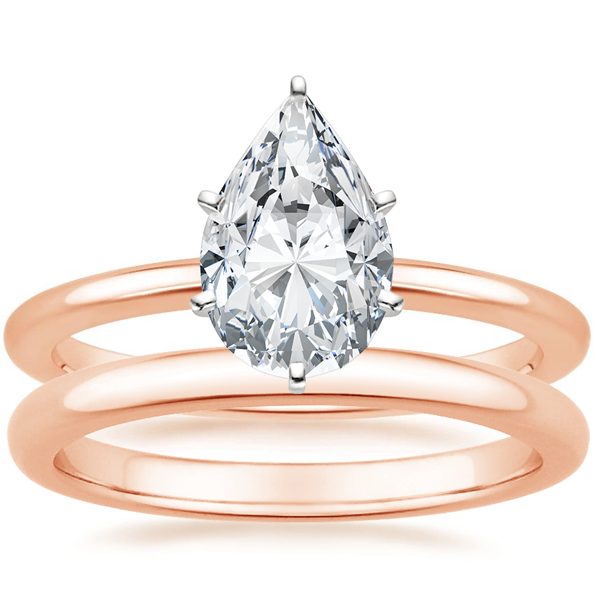 Six-Prong Petite Comfort Fit Ring with 2mm Comfort Fit Wedding Ring in 14K Rose Gold