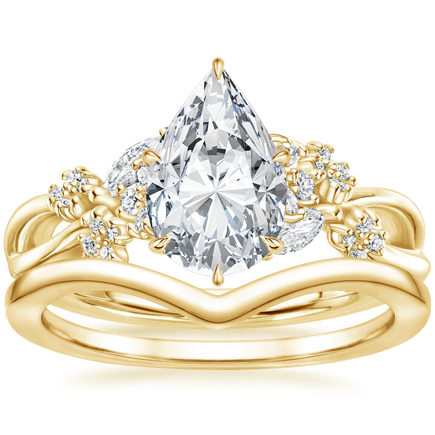 18K Yellow Gold Summer Blossom Diamond Ring (1/4 ct. tw.) with Chevron Ring