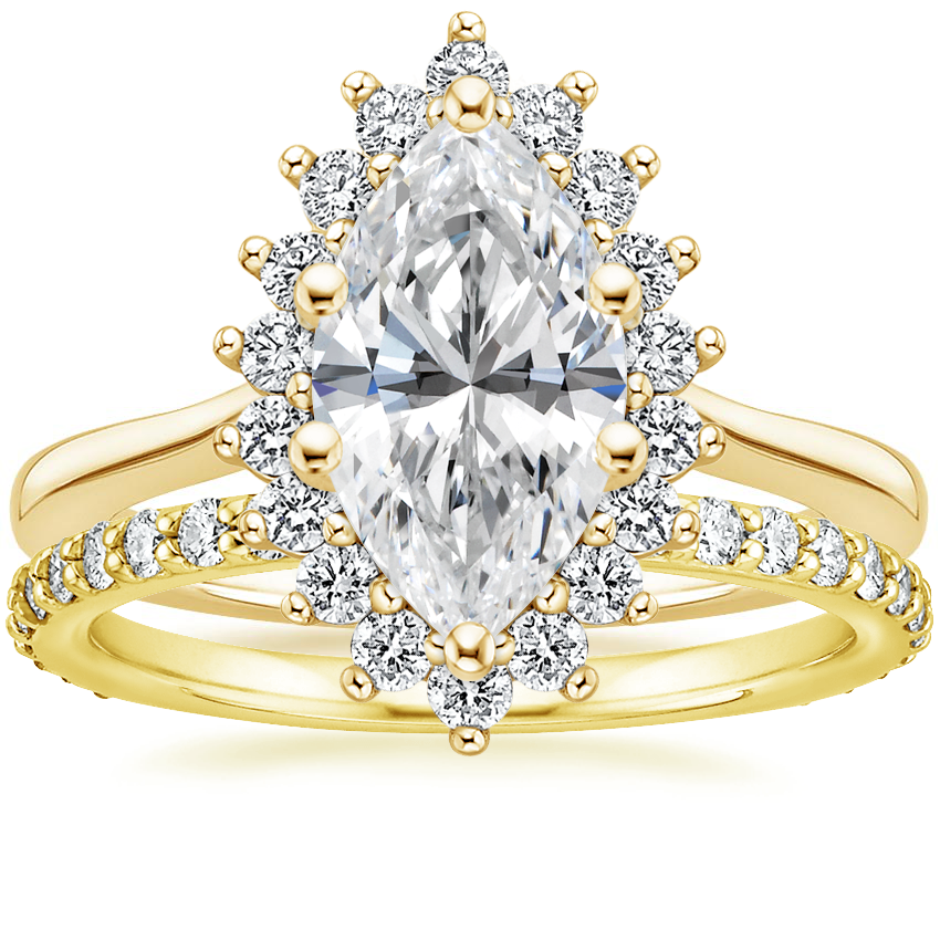 18K Yellow Gold Sunburst Diamond Ring (1/4 ct. tw.) with Luxe Petite Shared Prong Diamond Ring (3/8 ct. tw.)