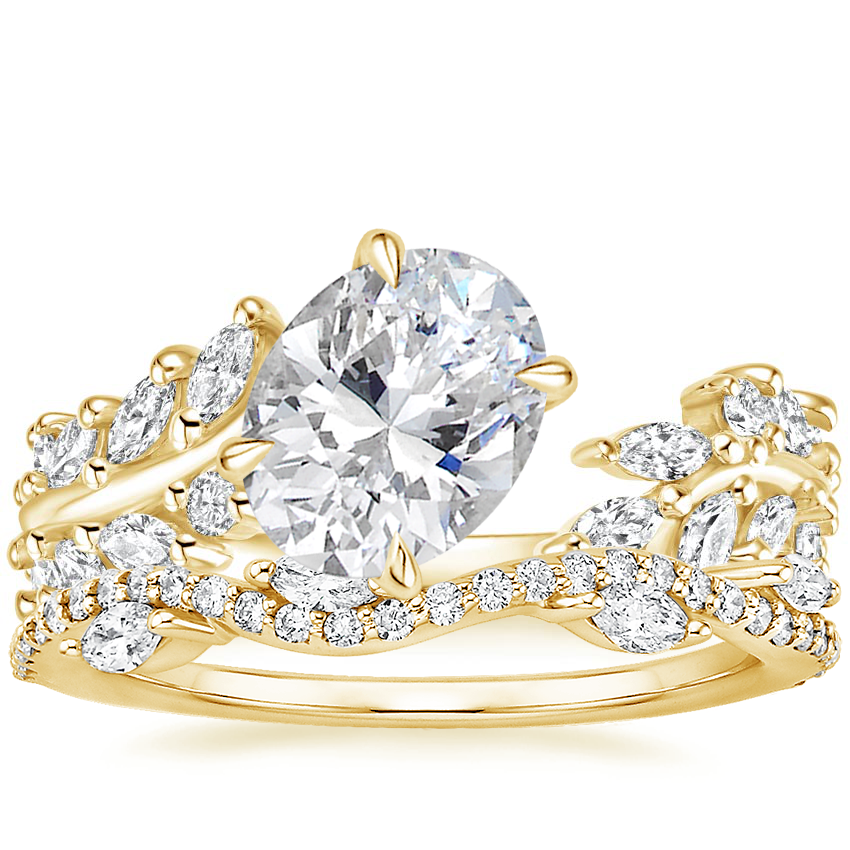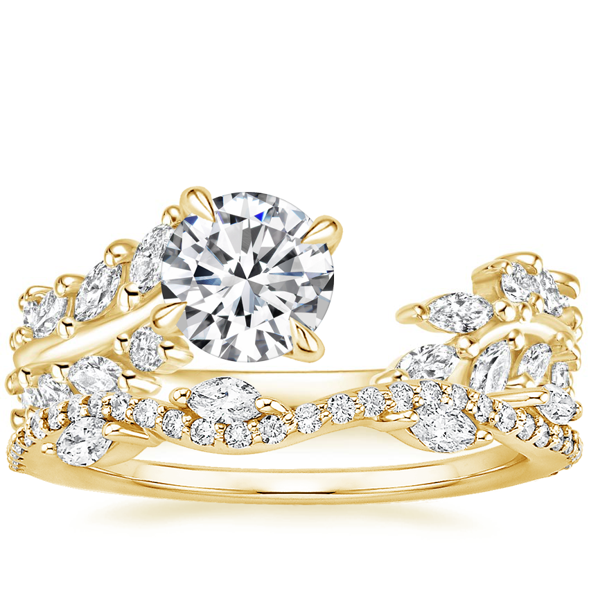 18K Yellow Gold Sweeping Ivy Diamond Ring (1/2 ct. tw.) with Luxe Winding Willow Diamond Ring (1/4 ct. tw.)