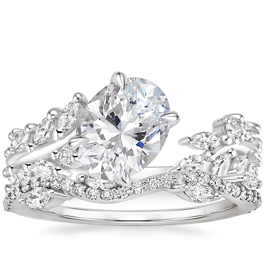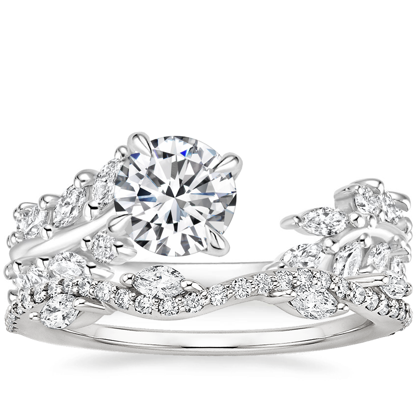 18K White Gold Sweeping Ivy Diamond Ring (1/2 ct. tw.) with Luxe Winding Willow Diamond Ring (1/4 ct. tw.)
