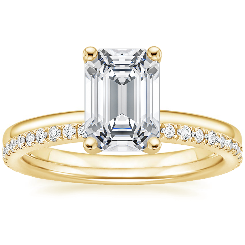 18K Yellow Gold Sydney Perfect Fit Lab Diamond Ring with Luxe Ballad Diamond Ring (1/4 ct. tw.) with 3.3 Carat Emerald Lab Grown Diamond