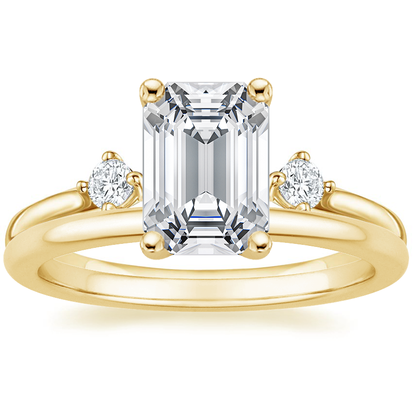 18K Yellow Gold Three Stone Floating Diamond Ring with Petite Comfort Fit Wedding Ring