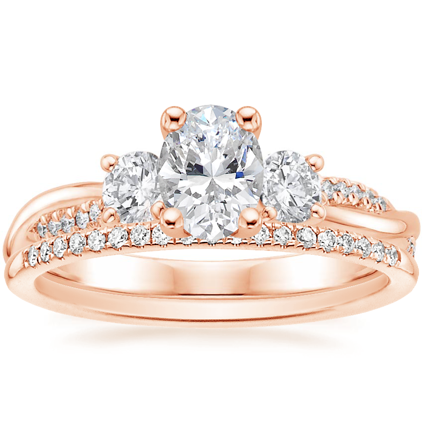 14K Rose Gold Three Stone Petite Twisted Vine Diamond Ring (2/5 ct. tw.) with Whisper Diamond Ring (1/10 ct. tw.)
