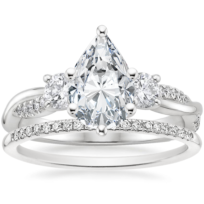 18K White Gold Three Stone Petite Twisted Vine Diamond Ring (2/5 ct. tw.) with Whisper Diamond Ring (1/10 ct. tw.)