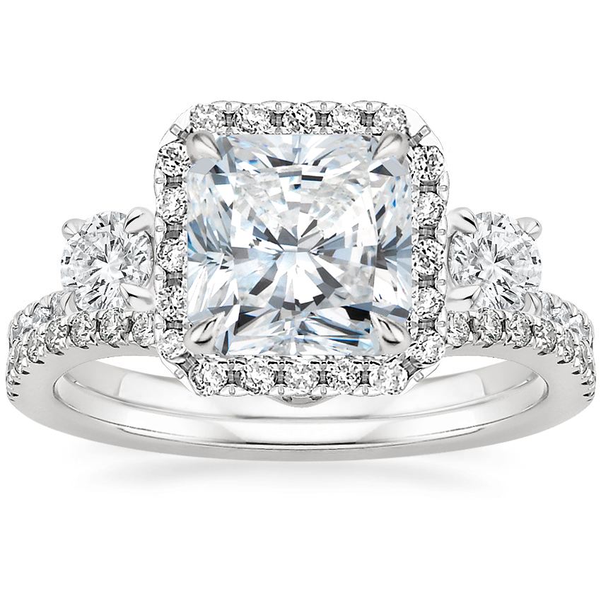 18K White Gold Three Stone Waverly Diamond Ring (3/4 ct. tw.) with Flair Diamond Ring (1/6 ct. tw.)