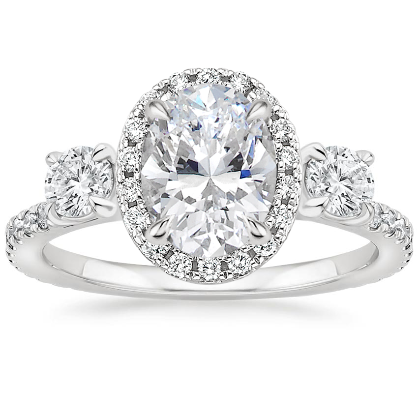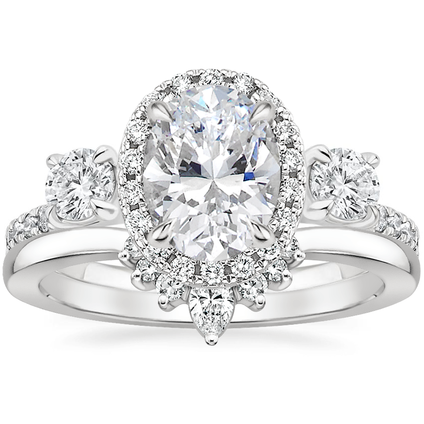 18K White Gold Three Stone Waverly Diamond Ring (3/4 ct. tw.) with Lunette Diamond Ring