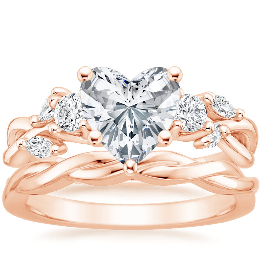 14K Rose Gold Three Stone Willow Diamond Ring (1/3 ct. tw.) with Twisted Vine Ring