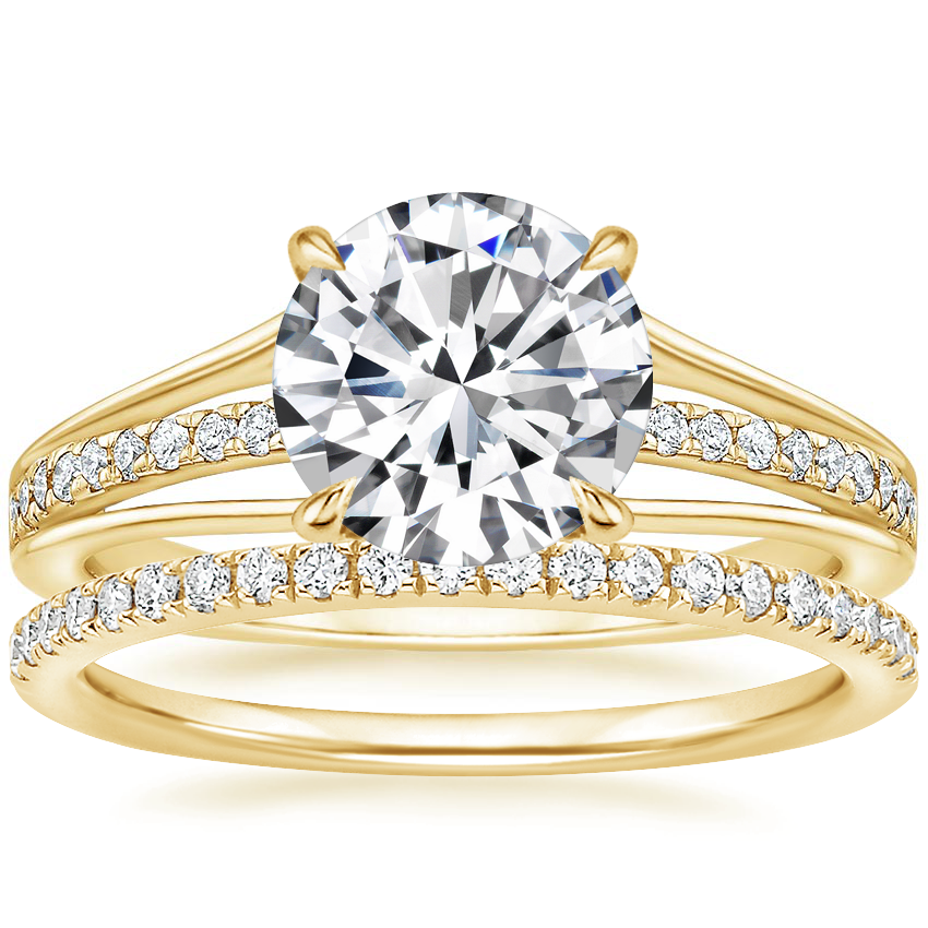 18K Yellow Gold Tressa Split Shank Diamond Ring with Ballad Diamond Ring (1/6 ct. tw.)