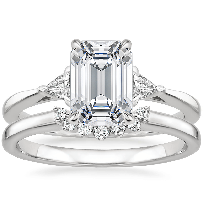18K White Gold Trillion Three Stone Diamond Ring with Crescent Diamond Ring