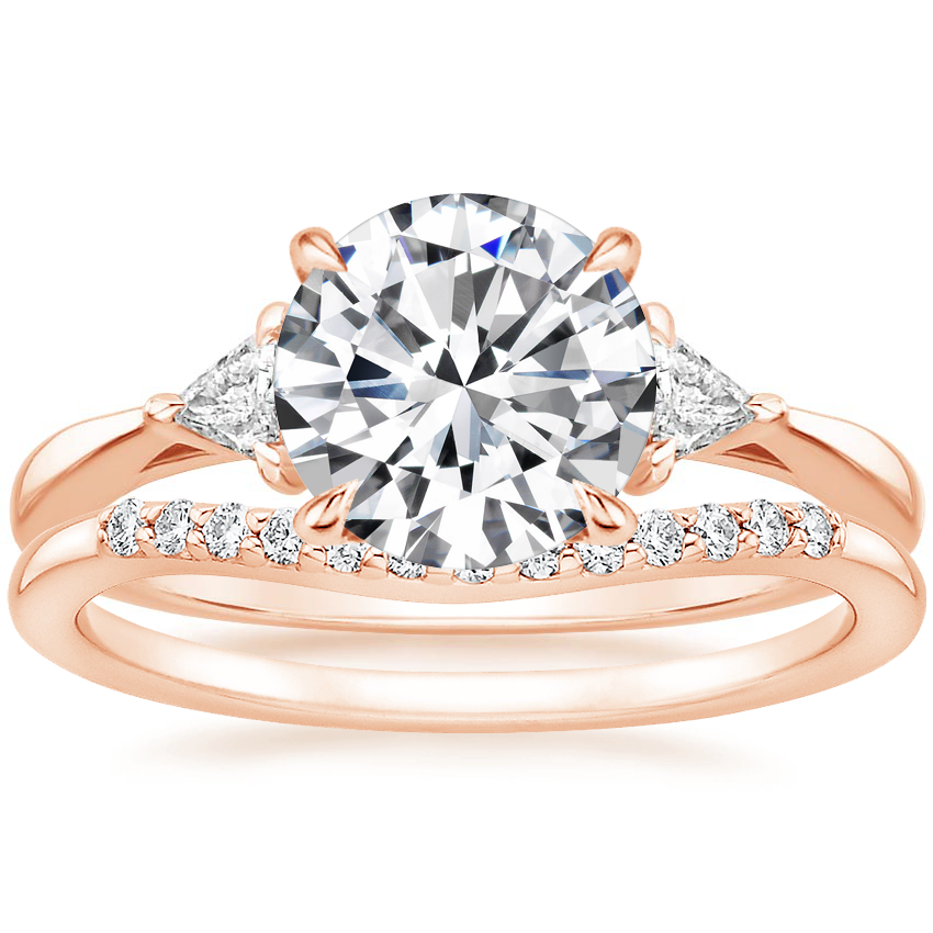 14K Rose Gold Trillion Three Stone Diamond Ring with Petite Curved Diamond Ring (1/10 ct. tw.)